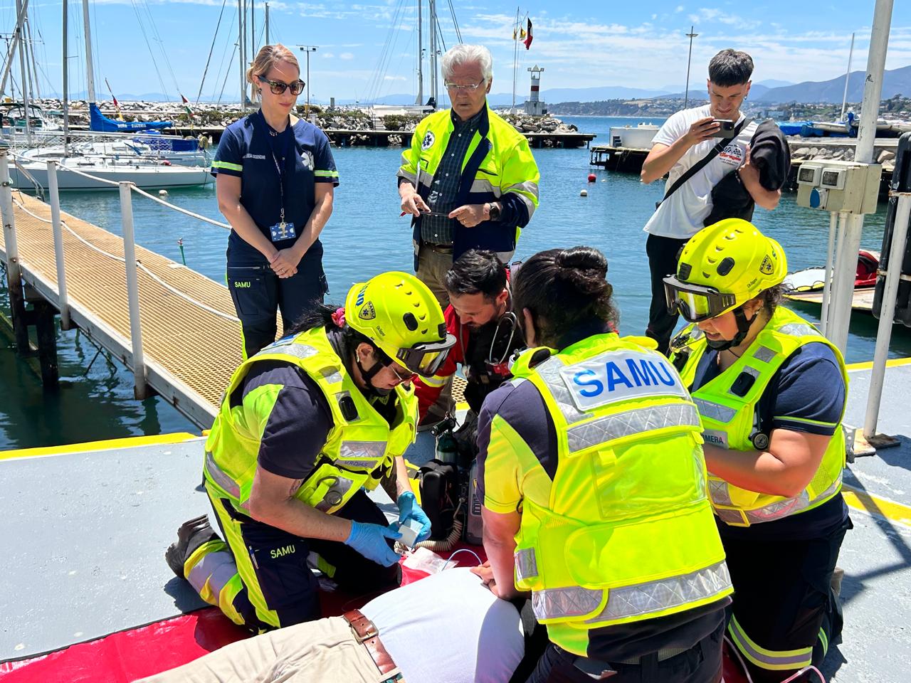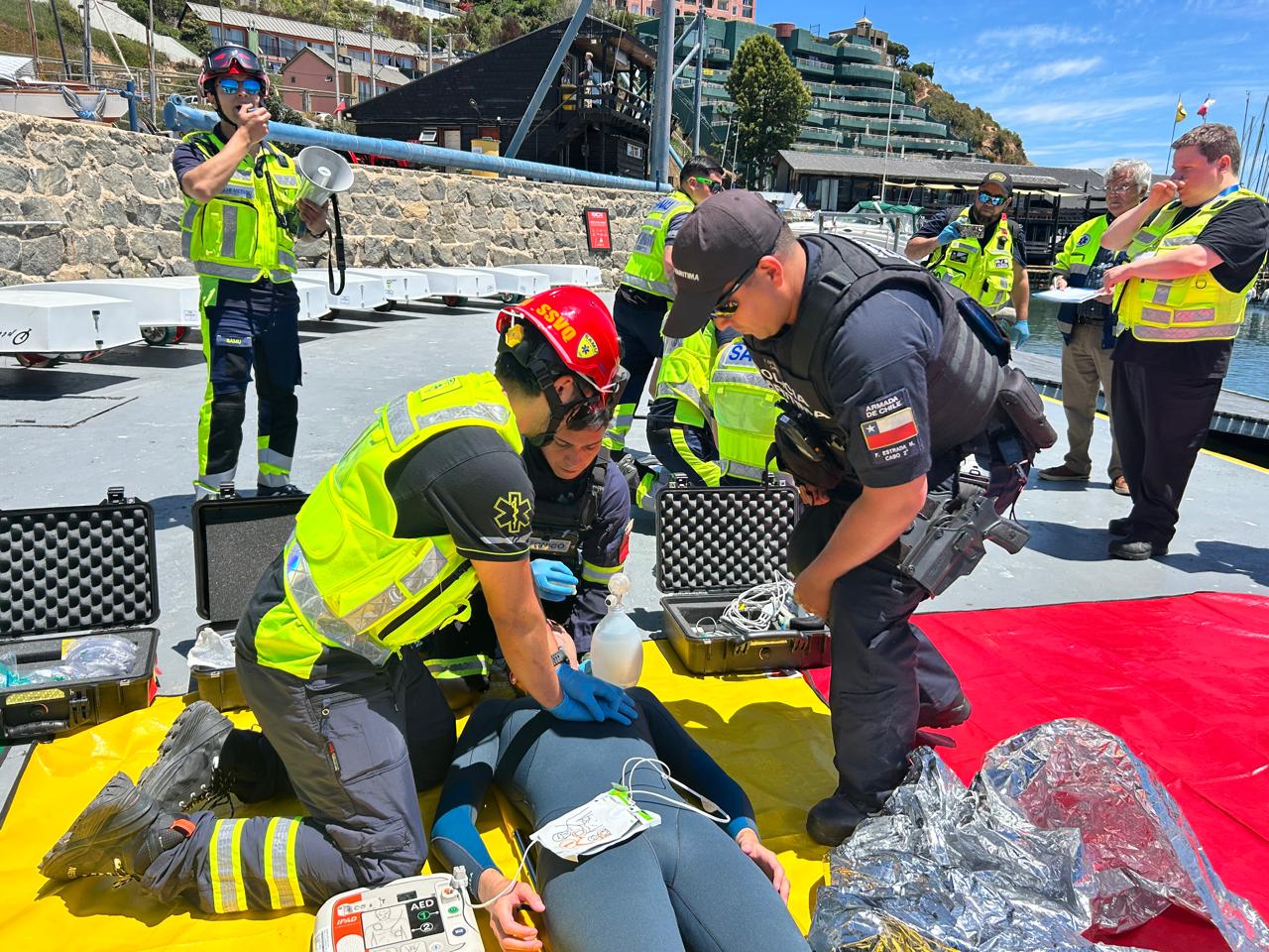 El ejercicio recreó la caída de varias personas desde una embarcación, activando de inmediato al Sistema de Atención Médica de Urgencia (SAMU), unidades marítimas de la Armada, personal municipal y equipos de primera respuesta. La actividad permitió poner a prueba los tiempos de reacción, la coordinación intersectorial, el traslado de pacientes simulados y su derivación final a un centro asistencial. Ejercicio que se enmarcó en el lanzamiento de la Campaña Verano en nuestras costas.